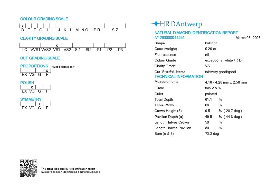 Diamante sigillato certificato HRD Antwerp.
