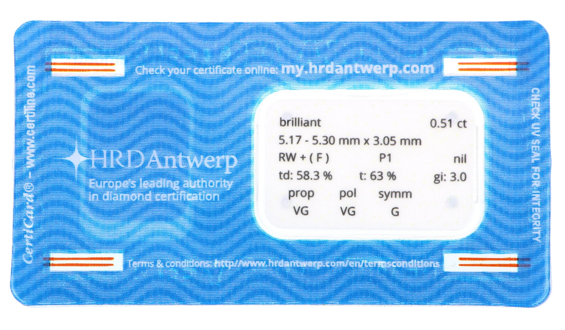 Diamante sigillato certificato HRD Antwerp.